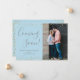 Gold Confetti on Light Blue Custom Photo Pregnancy Announcement Cards. Expecting parents! Modern hand lettered typography "coming soon" script card to share your happy news with friends and family. Features above and the bottom gold confetti frame on light blue or powder blue colour background. You can personalise the design by replacing the simple texts and vertical photo. If you need help or matching items, please contact to me! #3351