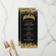A rich black background shows off a sparkling golden tiara with faux gold confetti raining down from the top of this menu card to collect on the bottom. Makes a perfect menu card for the blingiest Quinceanera celebration ever! This can also be customised for any sparkling girl's birthday or other celebration. Available with matching products.