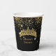 A rich black background shows off a sparkling golden tiara with faux gold confetti raining down from the top of this cup. Great addition to the table for the blingiest Quinceanera celebration ever! This can also be customised for any sparkling girl's birthday or other celebration. Available with matching products.