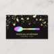 Elegant chef business card featuring beautiful gold confetti with faux gold foil accents on a black background. Add your name and contact details to make a lasting first impression.