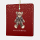 Gold Confetti Red Teddy Bear Christmas Ceramic Ornament