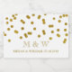 Custom text wedding monogram food label or favour label with glamourous gold glitter effect confetti pattern. Please note glitter pattern is photographic effect only.