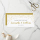 Wedding seating chart card in gold confetti design pattern.