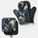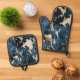 Gold Cream Blue Cowhide Oven Mitt & Pot Holder Set