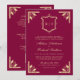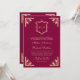 Gold Crest Monogram QR Code Magenta Wedding Invitation