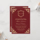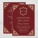 Gold Crest Monogram QR Code Maroon Red Wedding Invitation