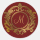 Gold Crest with Monogram Initial on Red Classic Round Sticker