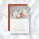 Gold Cross Dusty Terracotta Photo Baptism Foil Invitation.