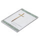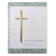 Modern and simple gold metal Christian Cross with large drop shadow on granite background (digital images). Design on Memorial spiral notebook as guest book. You can easily change text (colour, font, size and position) by clicking the customise button. Available with the same cross (small drop shadow), the same design with copper and silver cross. Matching Memorial service invitation, Sympathy Thank You cards and labels.