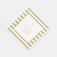Chic gold and white stripe First Holy Communion paper napkin featuring a gold cross with an elegant faux gold foil border that frames your special celebration event message set in modern typography. Designed by Thisisnotme©