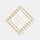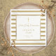 Elegant gold and white striped First Holy Communion paper napkin featuring a gold cross with a chic faux gold foil border that frames the celebration event details set in modern text. Personalise with your child's name and special date. Designed by Thisisnotme©