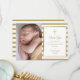 Gold Cross Striped Baptism Christening Photo Thank You Card