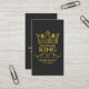 Classic business card featuring Gold Crown Moustache King Barbershop Logo with business contact details for professional networking. Make a lasting impression with our Moustache King business card. The first step to great barbering is great branding!