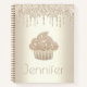 A sparkly, chic, champagne gold cupcake, elegant typography and glitter drips overlay a faux metallic champagne gold ombre background on this trendy, simple, modern custom name spiral notebook. Additional champagne gold glitter drips adorn the back. Personalise with your name. 8 different inside paper designs to choose from. Makes a stylish statement every time you use it. A great gift for back to school!
