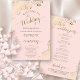 These wedding programs are elegant and tasteful, while still being budget friendly. The design features ornate golden faux foil curls and swirls with gold text on a pale blush pink background. The typography features lacy script calligraphy, and there is room for details on the ceremony, the bridal party, and a short thank you.