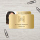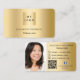 A faux gold looking background. Personalise and add your business logo,photo, name, title and contact information. Add your website url/link to the Qr code. With Facebook and Instagram icons. Black text.