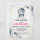 Gold Cute penguin Blue flower baby shower kids Invitation