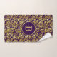 Modern metallic gold floral damask over dark purple background. Custom monogram