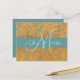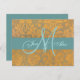 Gold Damask Save the Date Postcard | Blue with monogram initial.