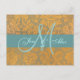 Gold Damask Save the Date Postcard | Blue