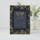 Gold & Dark Navy Blue Elegant Coral Wedding RSVP Card