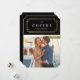 This art deco inspired design features a black and gold colour scheme with a touch of faux gold foil surrounding the word "Cheers". Deco is the perfect holiday design for newlyweds or couples celebrating their new life together!
