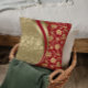 Gold & Deep Red Floral Damask Modern Design Cushion