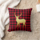 Gold Deer in Red Plaid Rustic Christmas Throw Pillow