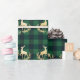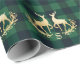 Gold Deer Monogram Green Buffalo Plaid Christmas Wrapping Paper