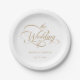 Simple gold and white wedding paper plate features elegant, romantic swirly calligraphy lettering with your names. For more advanced customisation of this design, please click the BLUE DESIGN TOOL BUTTON above!