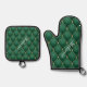 Gold Diamond Dark Emerald Green Custom Name Oven Mitt & Pot Holder Set
