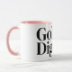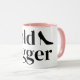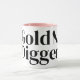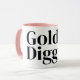 Gold Digger funny coffee mug with pink accents. Custom color design with elegant letters and high heel shoe. Personalize with your own dating text. Funny gift idea for single friend, girlfriend, boyfriend, wife, groom, bride, groom, boss, coworker, colleague etc.