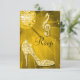 Gold RSVP flat cards printed on invitation paper. Womens' personalised, elegant custom response cards with glitz and glamour. Woman's beautiful gold and black double sided rsvps with a funky retro disco mirror ball, glamourous printed image rhinestones, glitter, sequins, diamonds bling jewels sparkle high heels stilettos fashion shoes, and glittery musical notes / music notes with sparkles on a vibrant gold lights and sparkles background. Chic, classy, cute, girly, modern rsvp card for birthday parties, Sweet 16 Party, Quinceanera, bridal showers, bachelorette party / hen night etc in trendy, fashionable colours / colours. These groovy, fancy, stylish, sophisticated, pretty, girlie cards are decorated / printed on both sides. PLEASE NOTE: All invitations on Zazzle have flat printed images. If you need any assistance customising your product please contact me through my store and I will be happy to help.