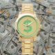 Make a bold statement with our Unisex Oversized Gold Bracelet Watch, featuring a striking green dollar sign design against a sleek gold background. This eye-catching timepiece exudes luxury and confidence, perfect for those who appreciate a blend of opulence and style. The oversized gold bracelet adds a touch of grandeur, ensuring you stand out in any crowd. Crafted with precision and attention to detail, this watch offers both durability and comfort. Ideal for both formal events and everyday wear, the green dollar sign design serves as a reminder of prosperity and success. Elevate your accessory collection with this unique and luxurious watch that speaks volumes about your taste and personality.