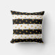 Chic throw pillow with elegant gold dots on black and white striped background.
