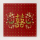 Gold Double Happiness Symbol with flowers and birds