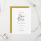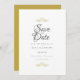 This chic save the date card features gold doves and hearts above and below your save the date details set in classic elegant typography.
