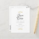This chic save the date card features gold doves and hearts above and below your save the date details set in classic elegant typography. The reverse has additional save the date details, including your wedding website, with your return address and space for your recipient's address.