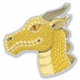 This original fantasy art by Richard H. Fay features the head of an amber-eyed gold-yellow dragon in profile.