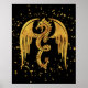 Gold Dragon In The Stars Poster on Black Backdrop