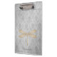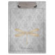 Jot down notes and reminders on a secure surface with a Gold Dragonfly Damask Personalised Clipboard. Clipboard design features a colourful dragonfly against an elegant vintage grey damask pattern. Additional gift items available with this design as well as a variety of colours.