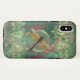 This iPhone X Case features a gold dragonfly on a green background embellished with rhinestones and leaves.
