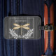 Add a personalised touch to your luggage with a Gold Dragonfly Rustic Personalised Luggage Tag. Luggage tag design features a vibrant dragonfly adorned with delicate foliage against a dark grey rustic wooden background. Additional gift items available with this design as well as a variety of colours.