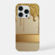 Shiny metallic gold background with dripping liquid gold and glitter borders, creating an elegant, luxurious banner for invitations, packaging, holiday and celebration designs or beauty and fashion promotions.