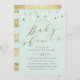 Gold drops and script baby shower invite in mint