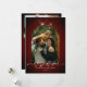 Gold dust against festive cranberry red creates an outstanding Merry Christmas holiday with a swirling handwritten calligraphy script. Easily replace your family details, including 3 pictures to make it your own.