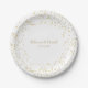 GOLD DUST CONFETTI WEDDING PAPER PLATES. Beautifully personalised with your names and date in gold on a delicate gold dust confetti background. Designed by Thisisnotme©