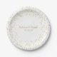 GOLD DUST CONFETTI WEDDING PAPER PLATES. Beautifully personalised with your names and date in faux gold on a delicate gold dust confetti background. Designed by Pure Piglet© at www.zazzle.com/purepiglet*.