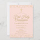 Elegant first holy communion invitation featuring delicate gold dust, you can personalise with your special information in chic gold text on a blush pink background. Designed by Thisisnotme©