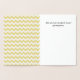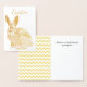 Pretty Easter greeting card done in white with a gold foil rabbit done in patterns. A yellow and white chevron pattern decorates the inside left of the card. Personalise the custom text to suit your needs.